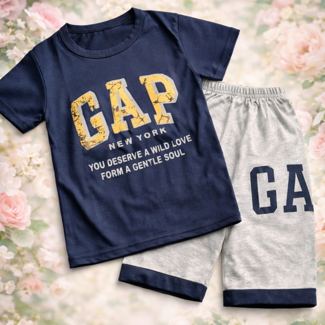 Be the first to review “GAP Style Boys Summer Outfit – Navy T-Shirt & Grey Shorts Set”